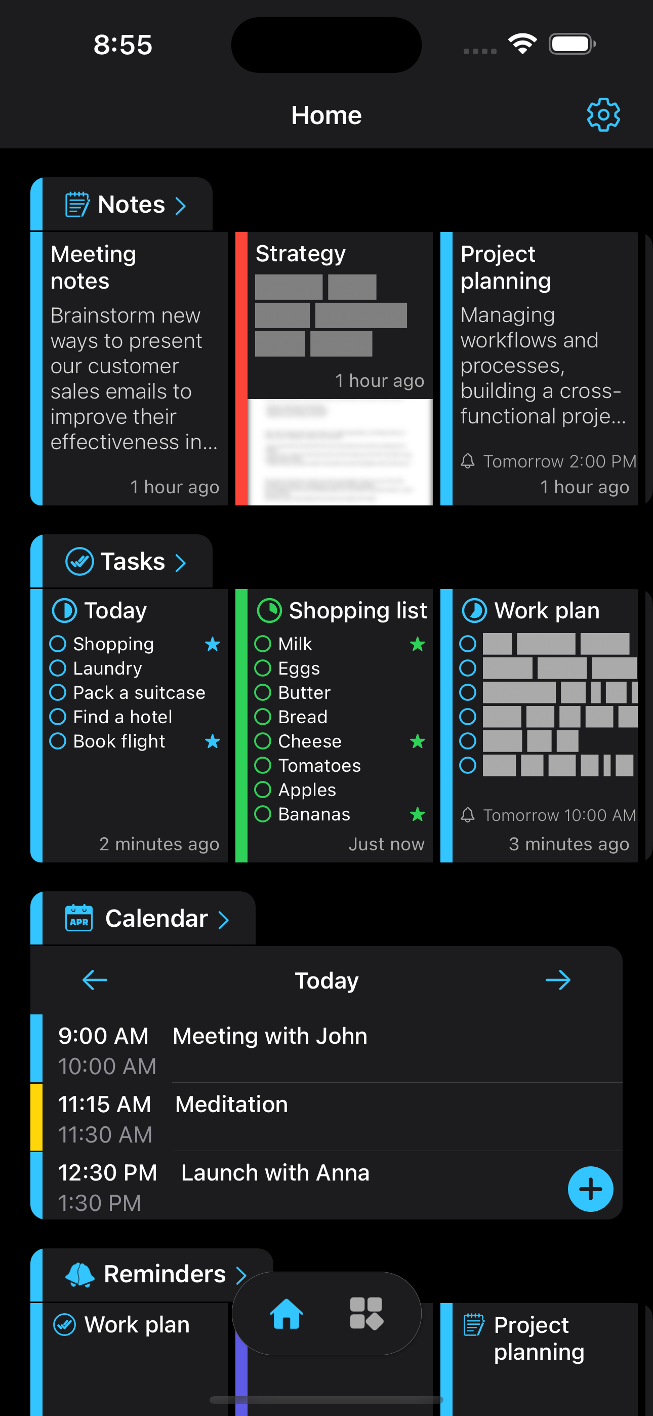 Don't miss anything by setting reminders to be notified at a specific time or location.