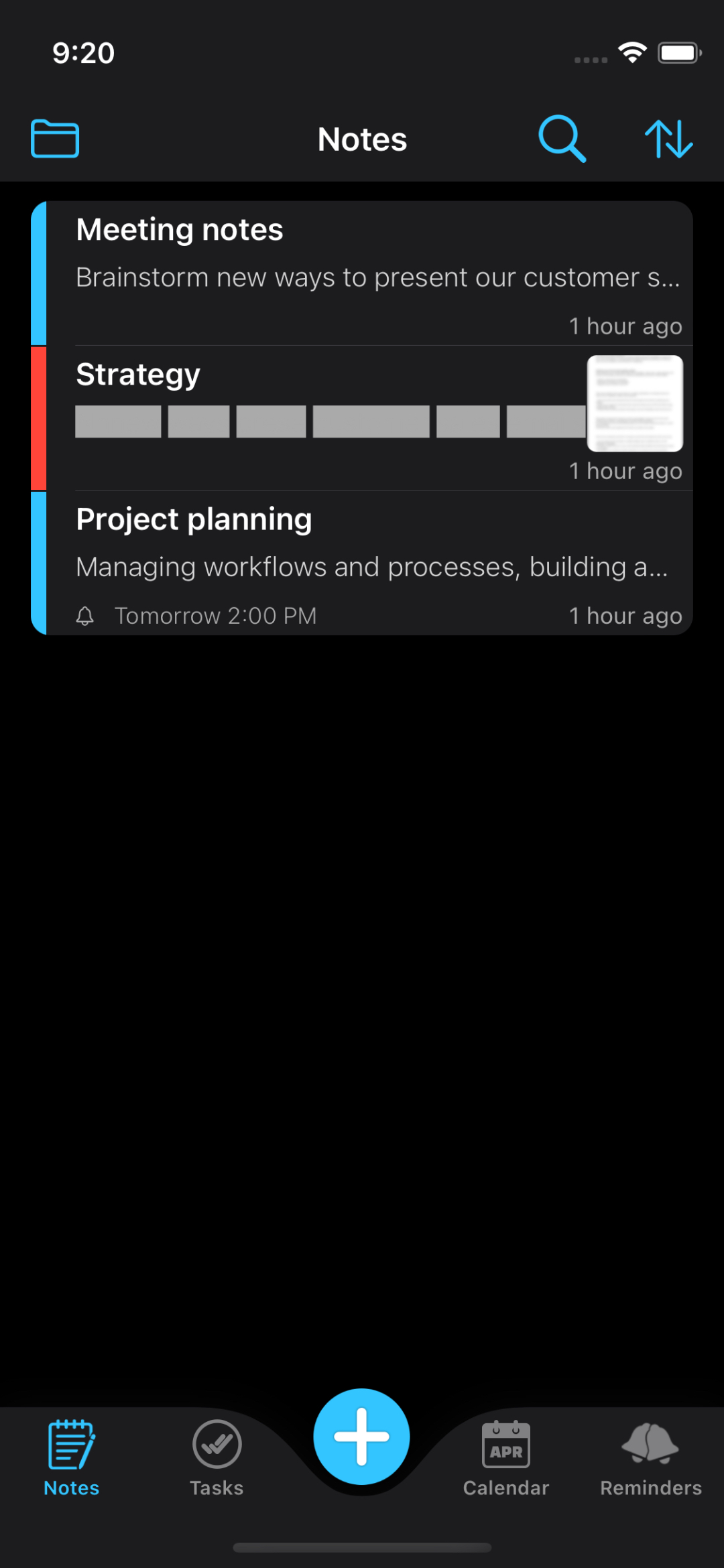 Create notes using deadlines and reminders so that you don't miss anything important.